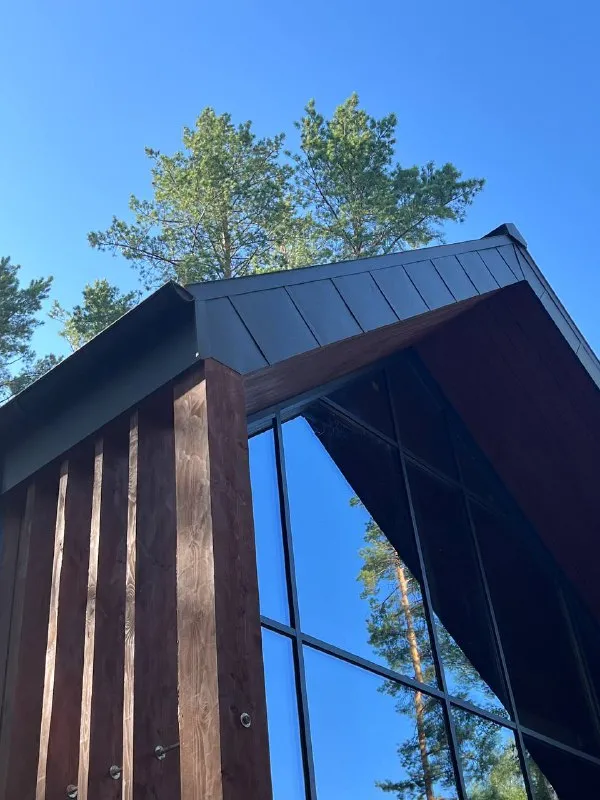 Наружные элементы кровли крепятся без единого гвоздя и самореза, а фальцевый шов «намертво запечатывает» соединение. Воде просто некуда течь.